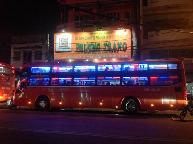 Traveling by bus is the most convenient and cheapest way. It normally takes 3.5 to 5 hours to cover the distance of 170 km for US$8-17. Buses from Mien Tay Bus Station in Ho Chi Minh City leave every 30–60 minutes.